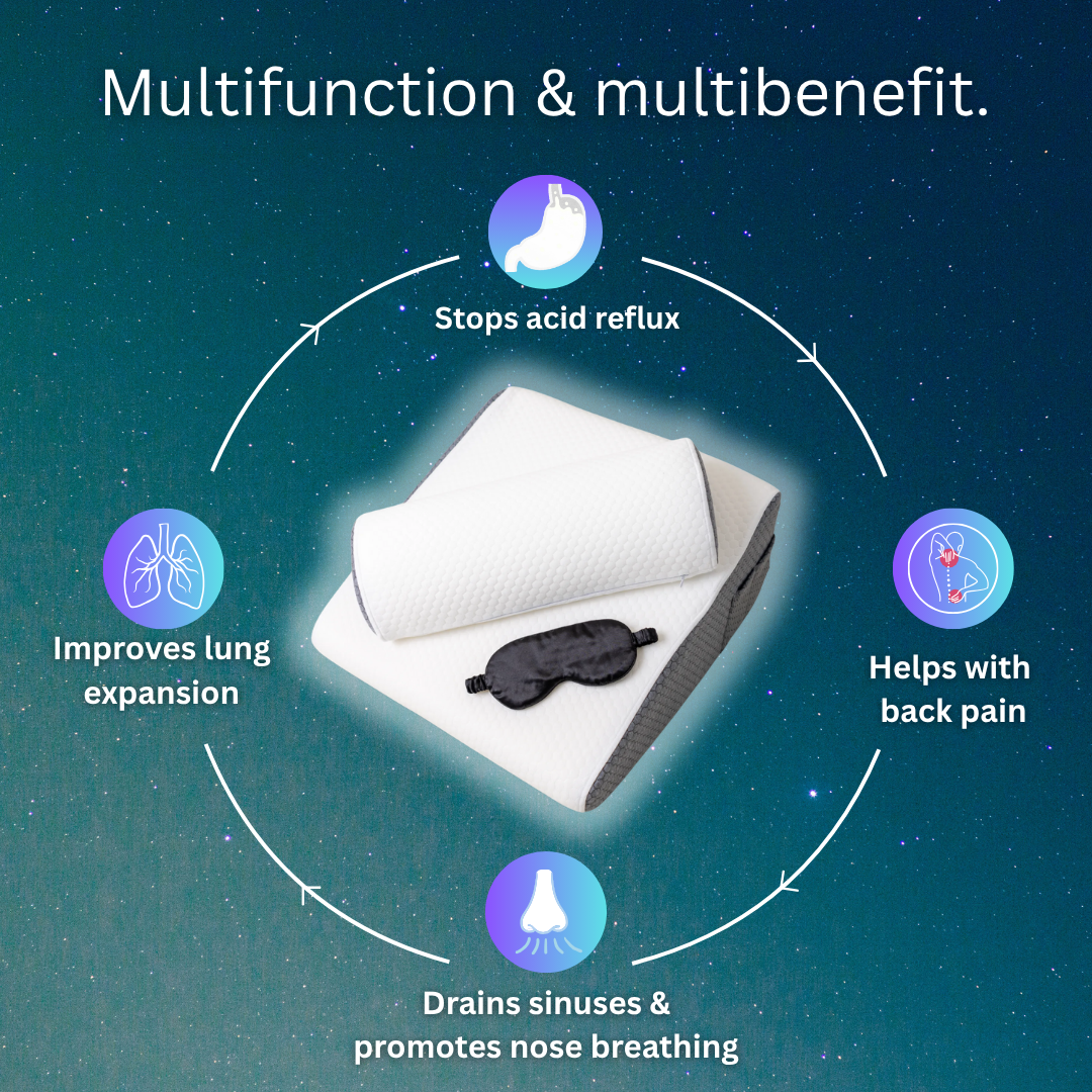 Reduce snoring, sleep apnea, and the discomfort of morning headaches, dry mouth, and sore throat. This wedge pillow supports better airflow for deeper, healthier sleep, so you can rest without constantly waking up during the night—helping improve your energy, focus, and overall well-being.